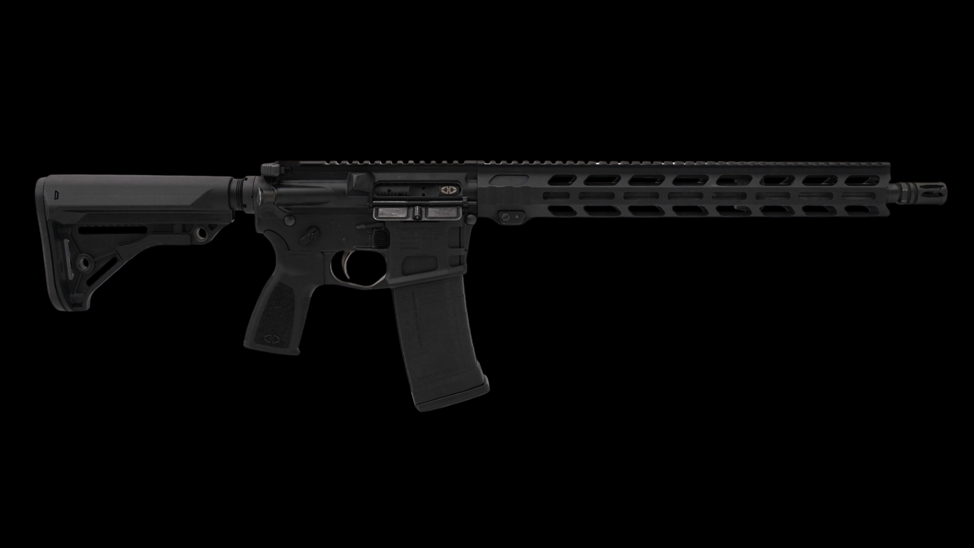 Its nitride finish boosts durability and prevents corrosion, while the carbine gas system reduces recoil, enabling faster follow-up shots